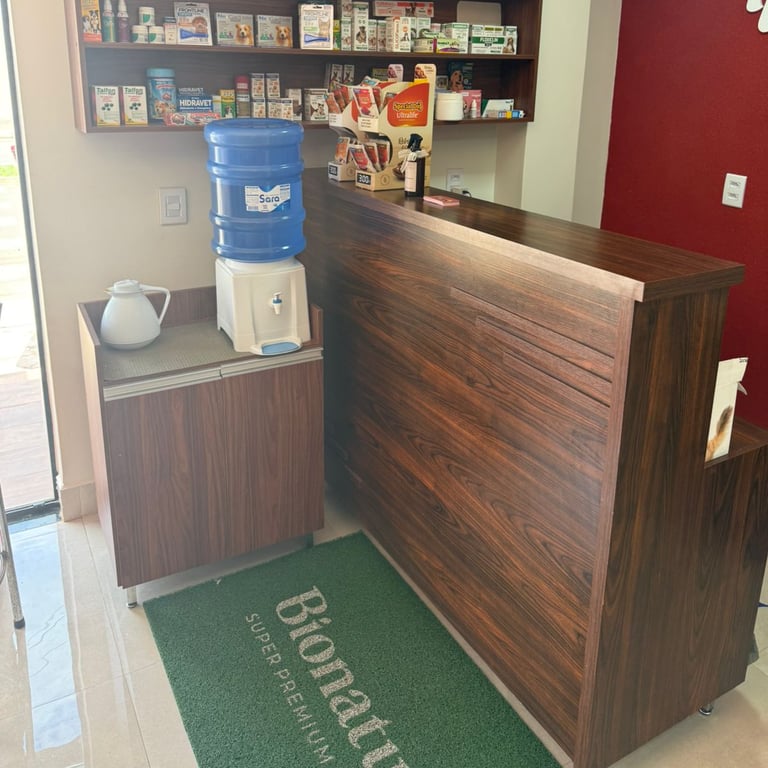 Trabalhamos com uma linha completa de medicamentos, acessórios, rações e produtos de qualidade, sempre selecionados com cuidado para atender as necessidades de cada pet. Além disso, contamos com serviços profissionais de banho e tosa, realizados por uma equipe experiente, carinhosa e dedicada a proporcionar uma experiência tranquila e agradável para o seu companheiro.